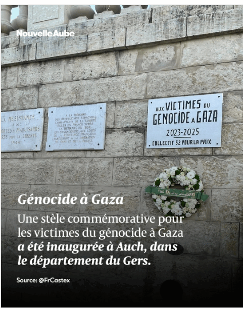 L’Observatoire Juif de France  a déposé ce jour une plainte pénale à Auch à la suite de l’apposition d’une stèle portant la mention « Aux victimes du génocide à Gaza – 2023‑2025 »,